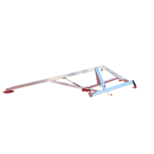 Deze aluminium staander van het hellend dak systeem van RSS hangt in de goot en steunt af tegen de gevel. De staander is in hoogte verstelbaar. Voor 3 meter dakrandbeveiliging heb je twee staanders nodig. Voor elke opvolgende sectie dakrandbeveiliging van drie meter heb je een extra staander nodig.