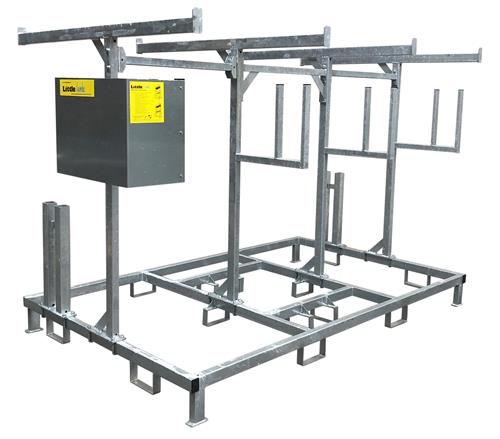 Extra robuust uitgevoerde steigerbok met ruimte voor 12 meter rolsteiger